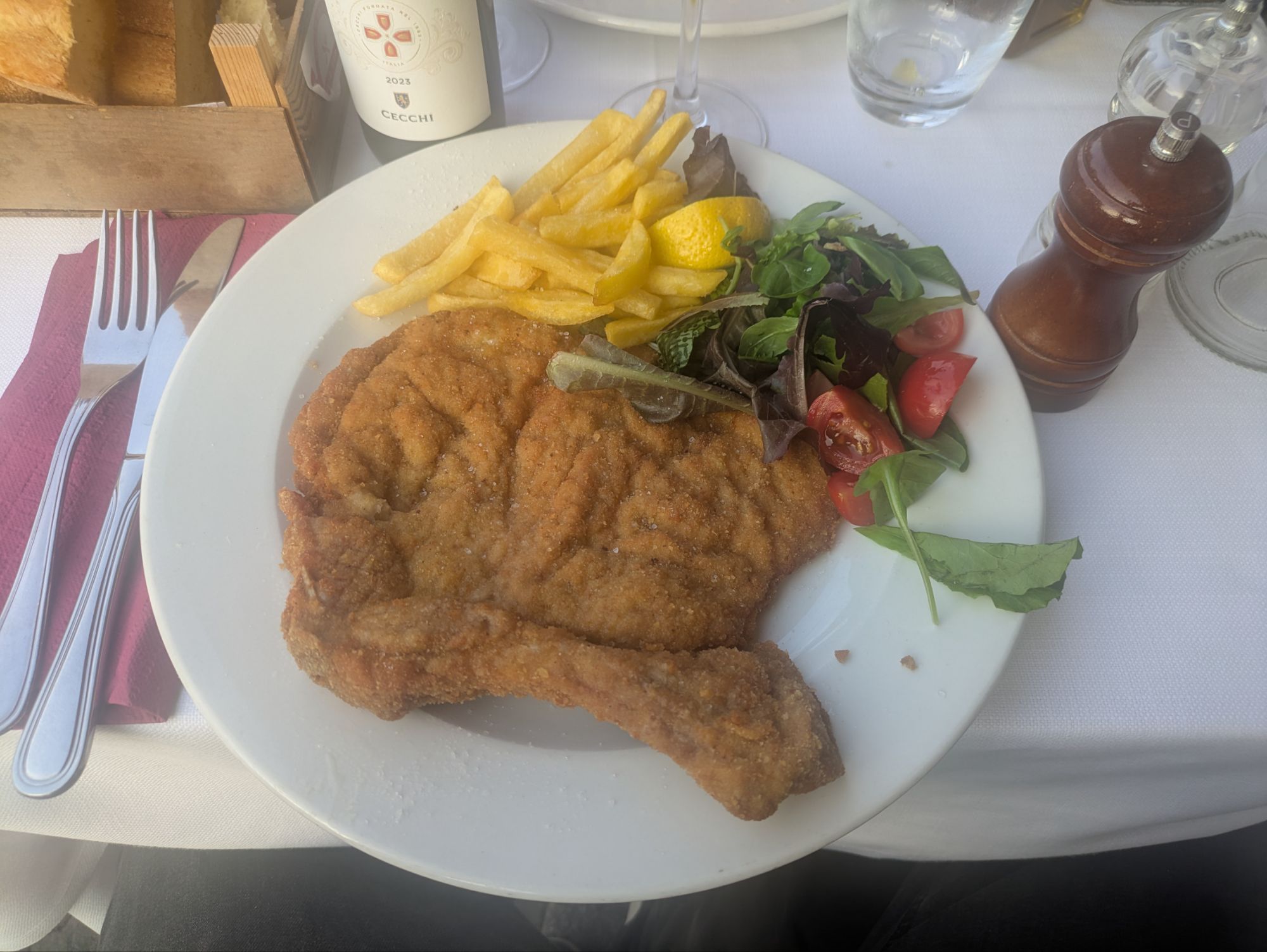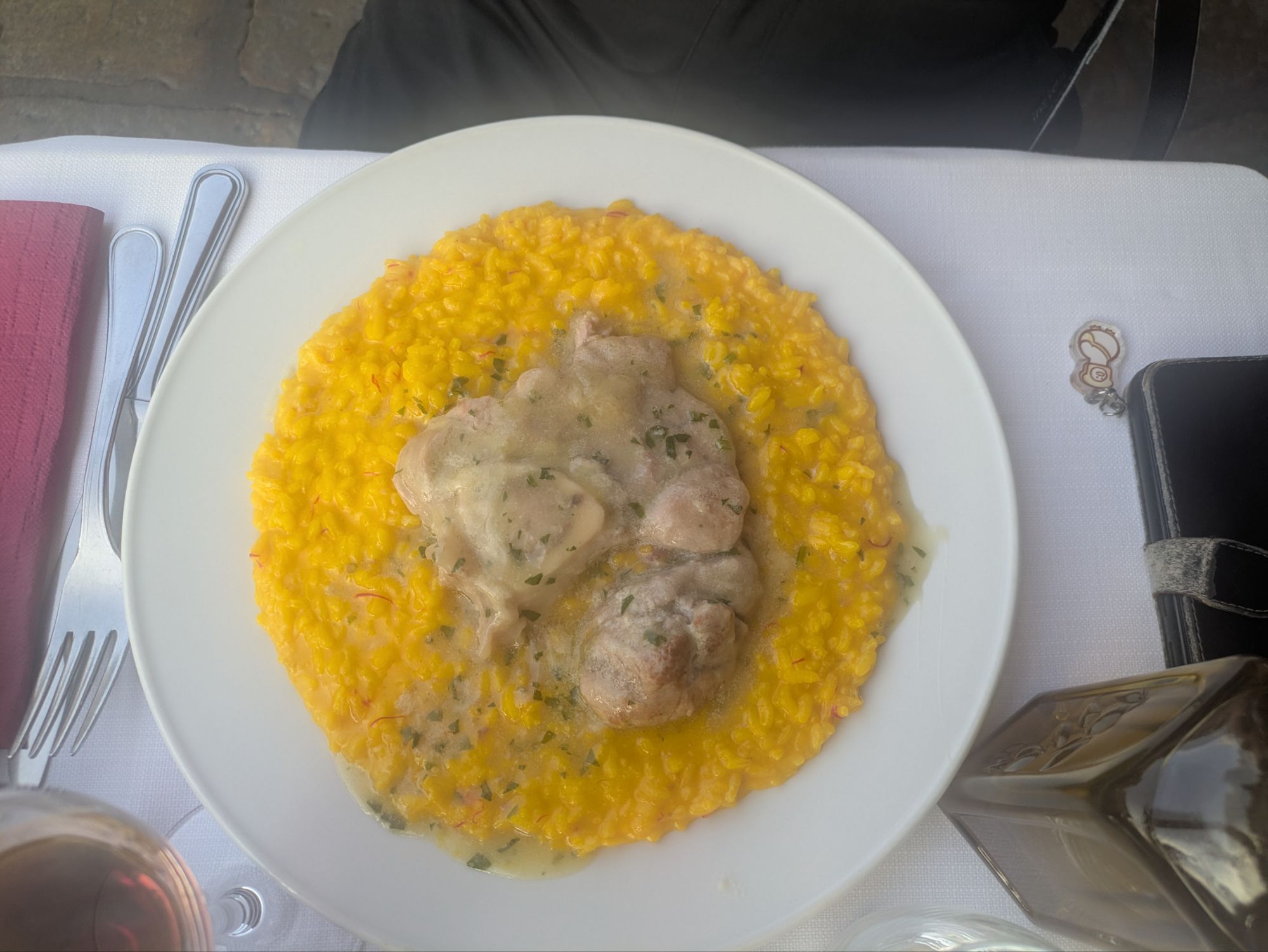 Grüße aus Milano. Es wird gesnackt, was die Landesküche hergibt. Ossobucco mit Risotto Milanese, Cottoleta Milanese vom Kalb und überraschender Weise ein Dumpling aus Chinatown. Davor ein paar Spritz und dazu eine gute Portion Chianti (Der lokale Wein war aus).